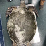 Tip shaved down, minor abrasions on flippers, minor carapace abrasions