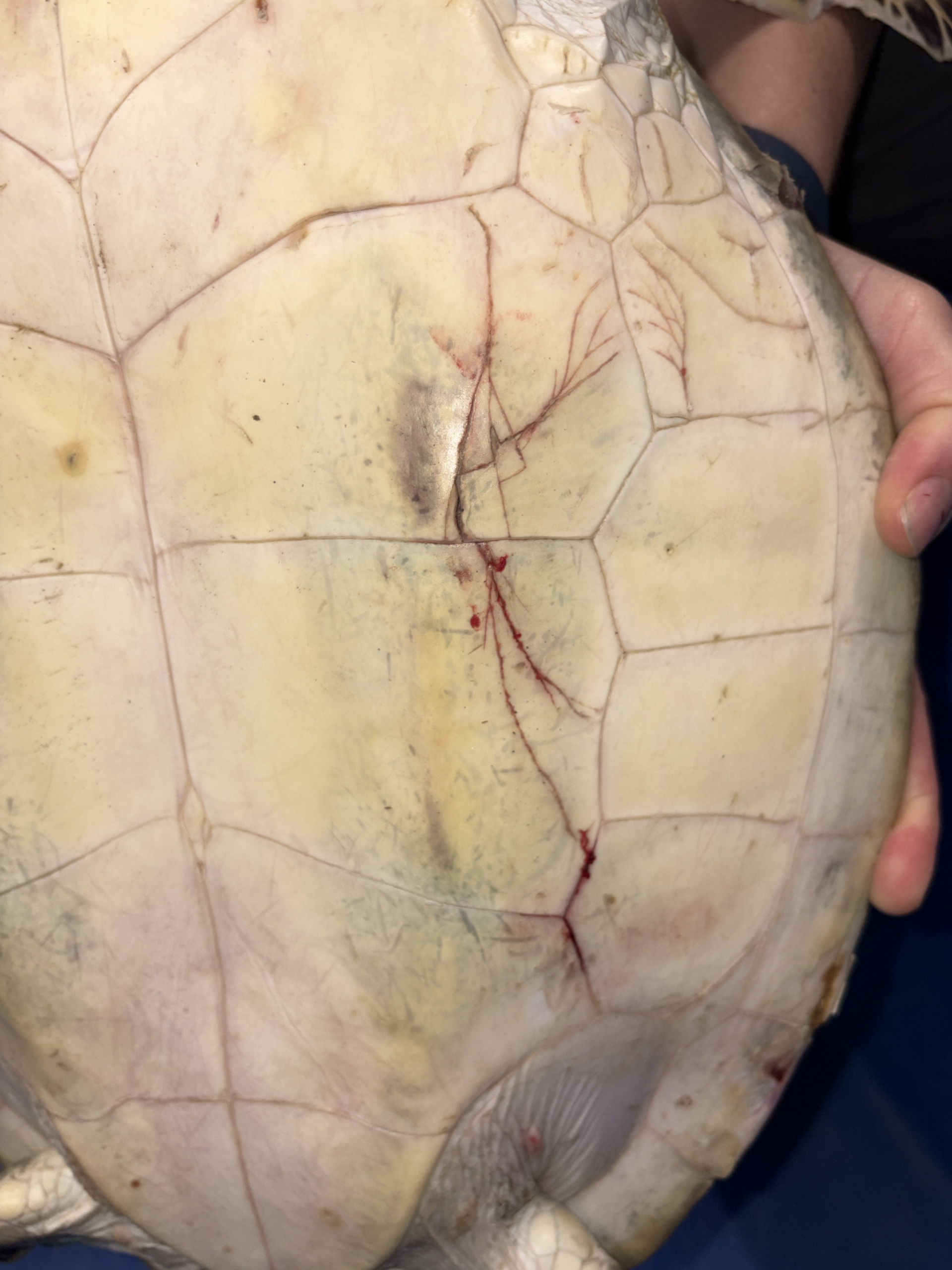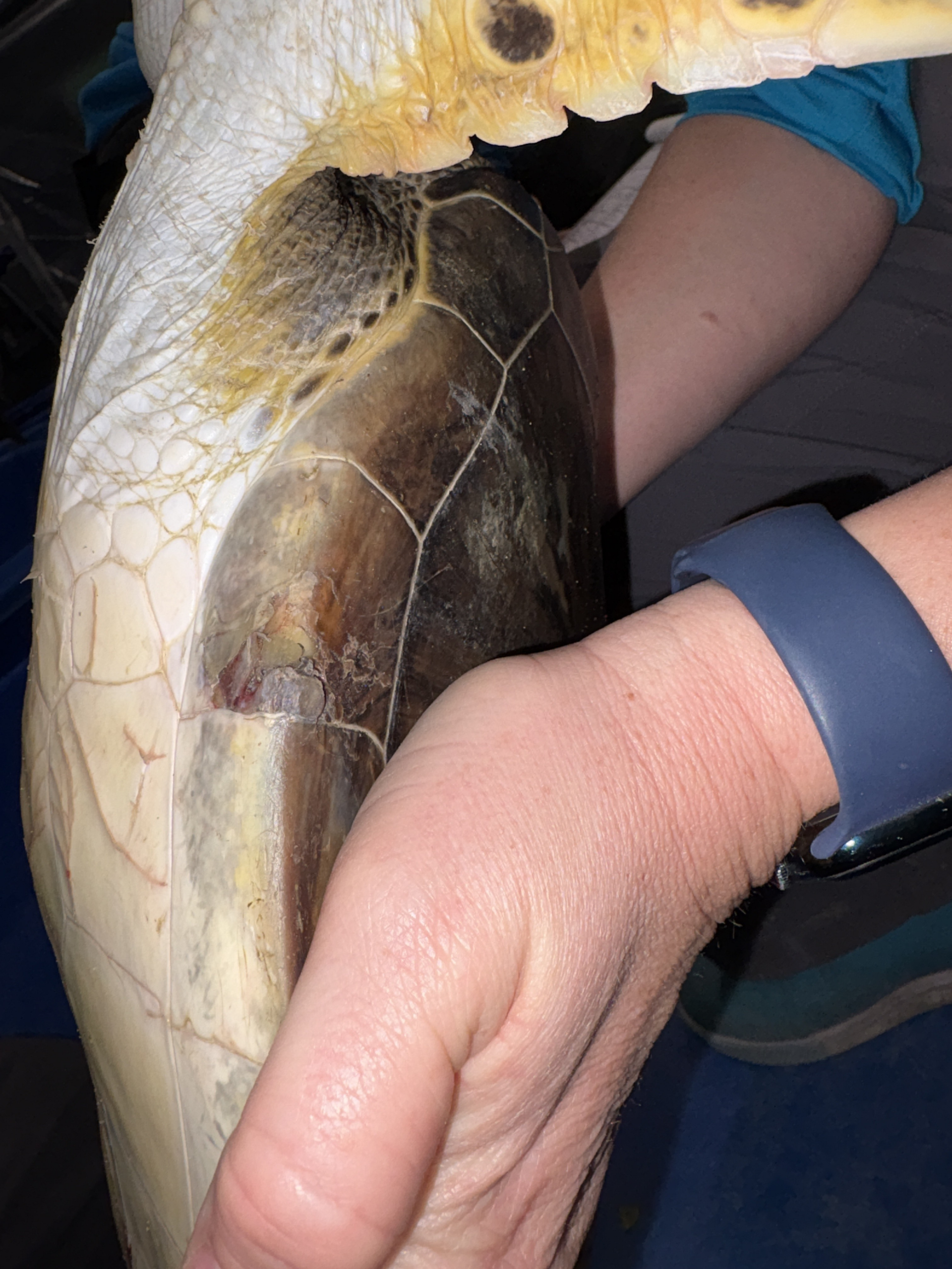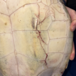 Blunt force trauma injury to the carapace & plastron and a few small FP tumors.