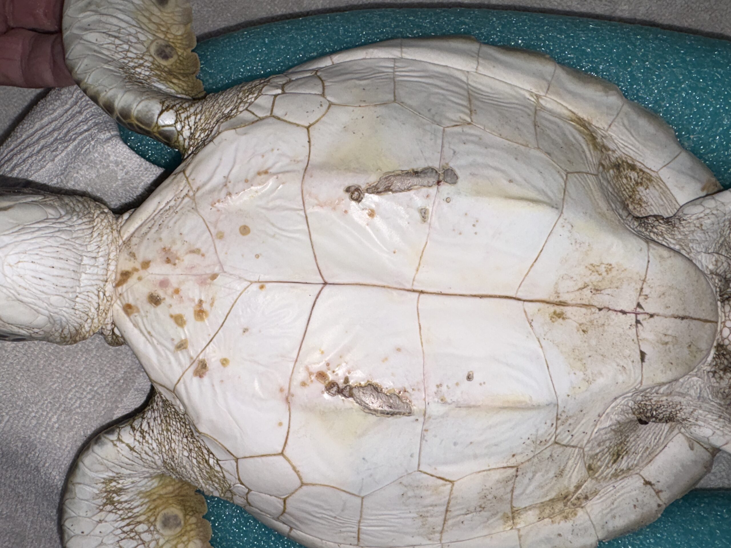 Moderate abrasions on plastron, moderate algae load on carapace, minor algae load on plastron.