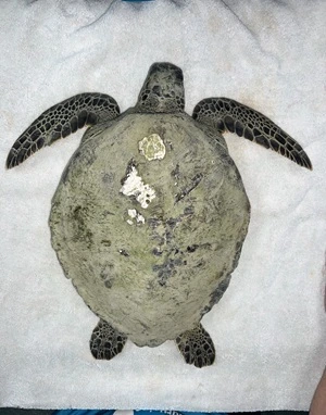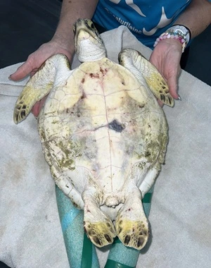 Moderate plastron abrasions and bruising, wounds on all 4 flippers, abrasions on edge of both left and right marginal scutes, moderate abrasions to carapace.
