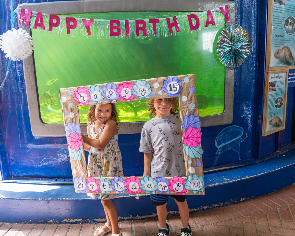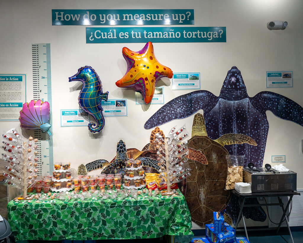 Take your celebration to the next level with a reserved party space, a guided tour of our sea turtle hospital and resident turtles, and a hands-on encounter with our three-toes box turtle, Mario! Guests will enjoy an interactive activity or craft, a themed photo op station, and a personalized birthday message displayed. Each child will take home a reusable sea turtle themed water bottle, sticker, and coloring sheet to remember the day.
