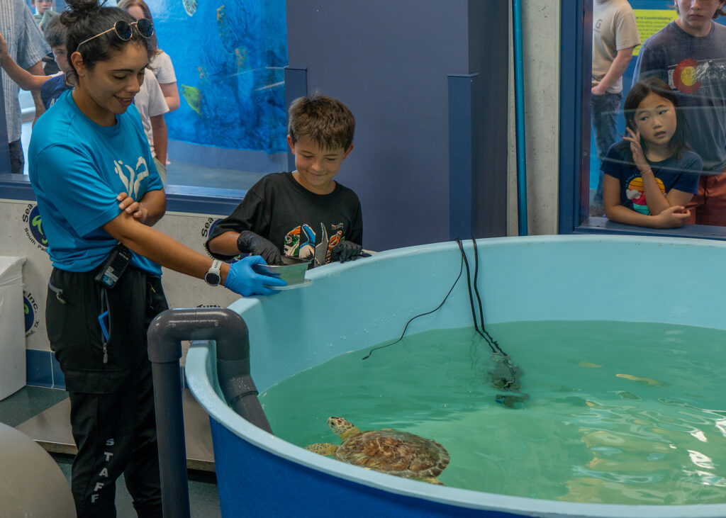 Experience the thrill of feeding one of our sea turtle residents or several of our patients up close! Under the guidance of our team, you’ll learn about their unique diets while creating unforgettable memories.