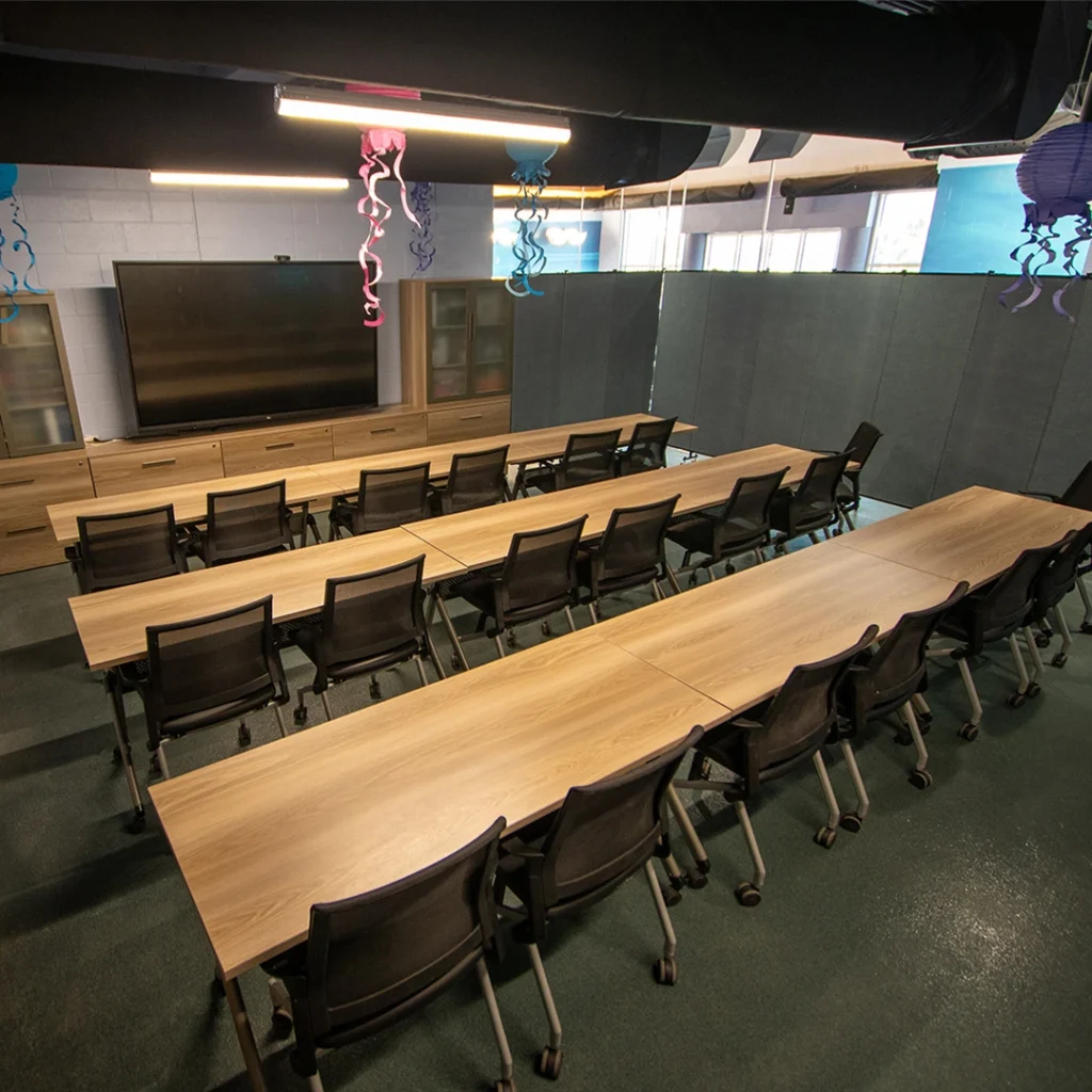 Modern, spacious, and climate-controlled, this versatile indoor venue is perfect for meetings, receptions, workshops, and private gatherings. This space blends functionality with purpose surrounded by our mission of sea turtle conservation.